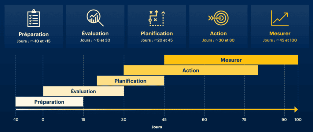 Pas de panique ! Gartner, référence de la recherche en informatique, a concocté un programme sur mesure pour vous aider à traverser ces 100 premiers jours, souvent tumultueux.